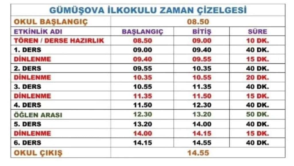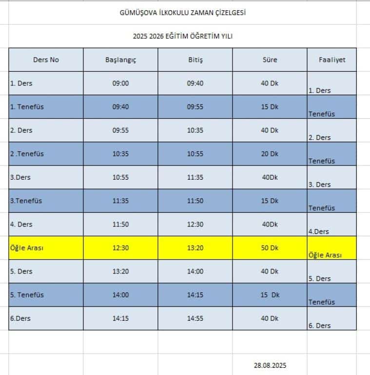 2025 2026 Eğitim Öğretim Yılı Zaman Çizelgesi